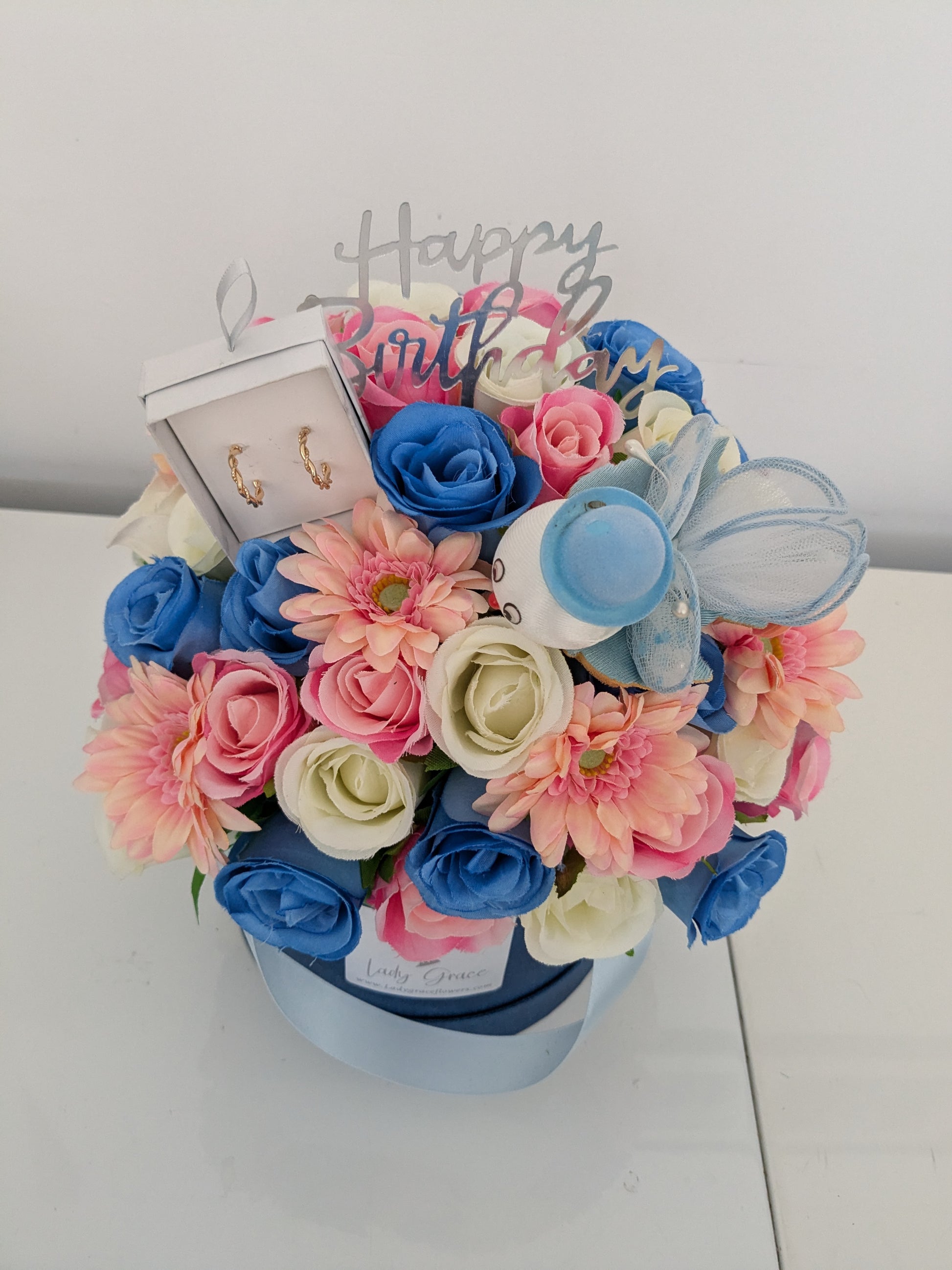 Birthday Blue & Pink Fairy Hat Box of Joy Silk Flowers Gift