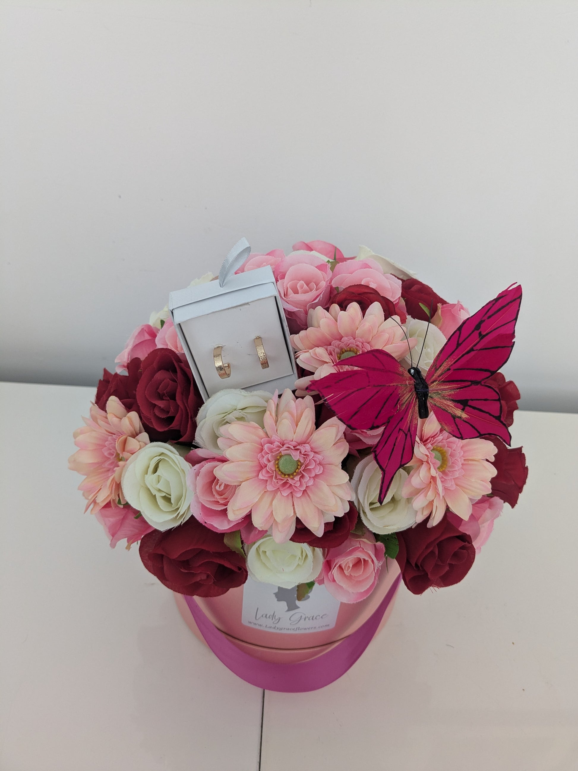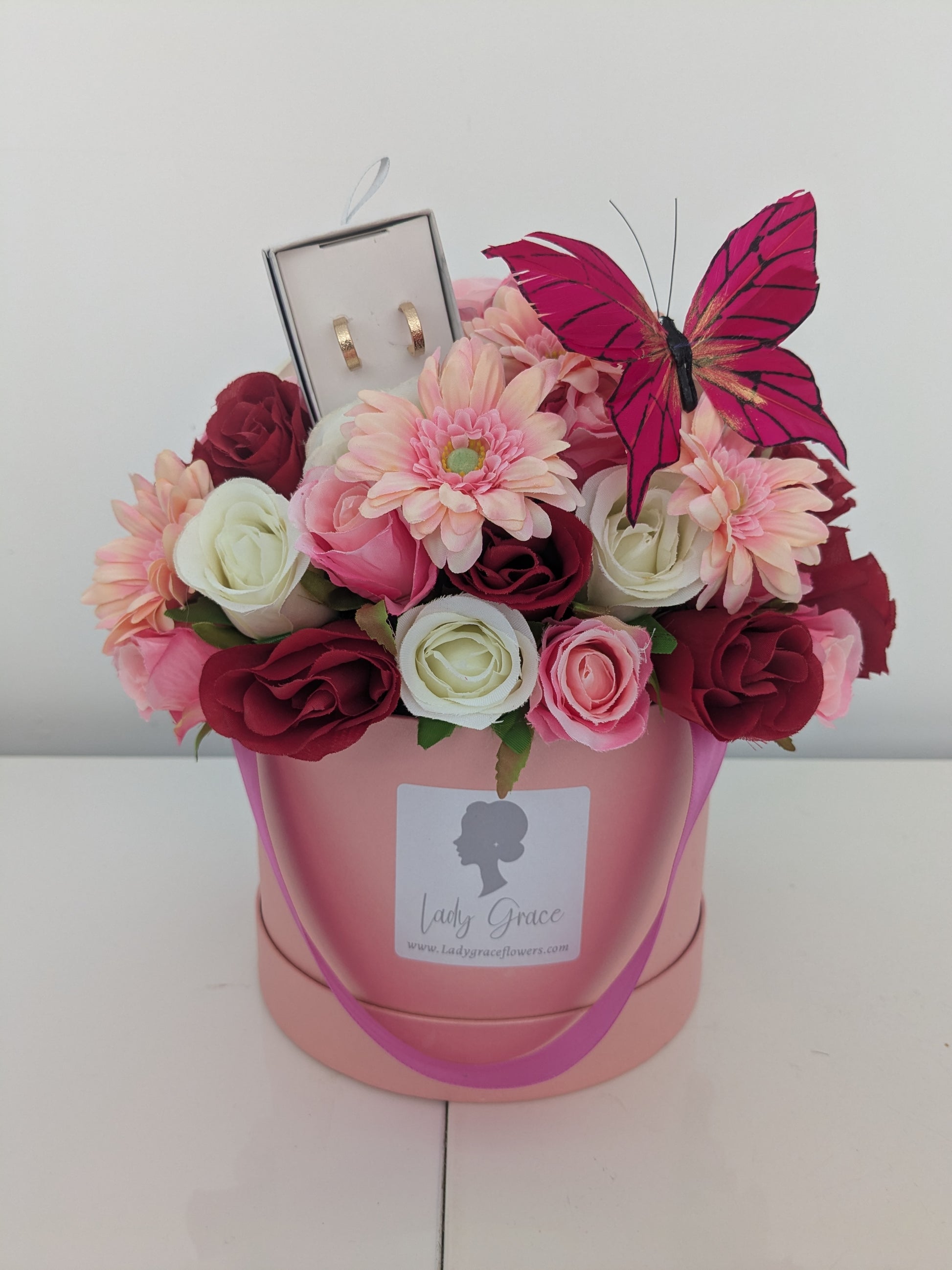 Pink Butterfly Earrings Hat Box of Joy Silk Flowers Gift