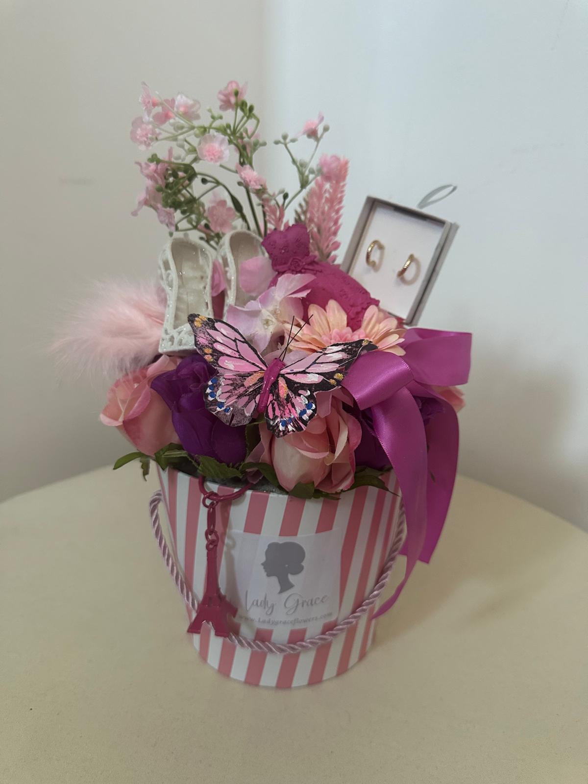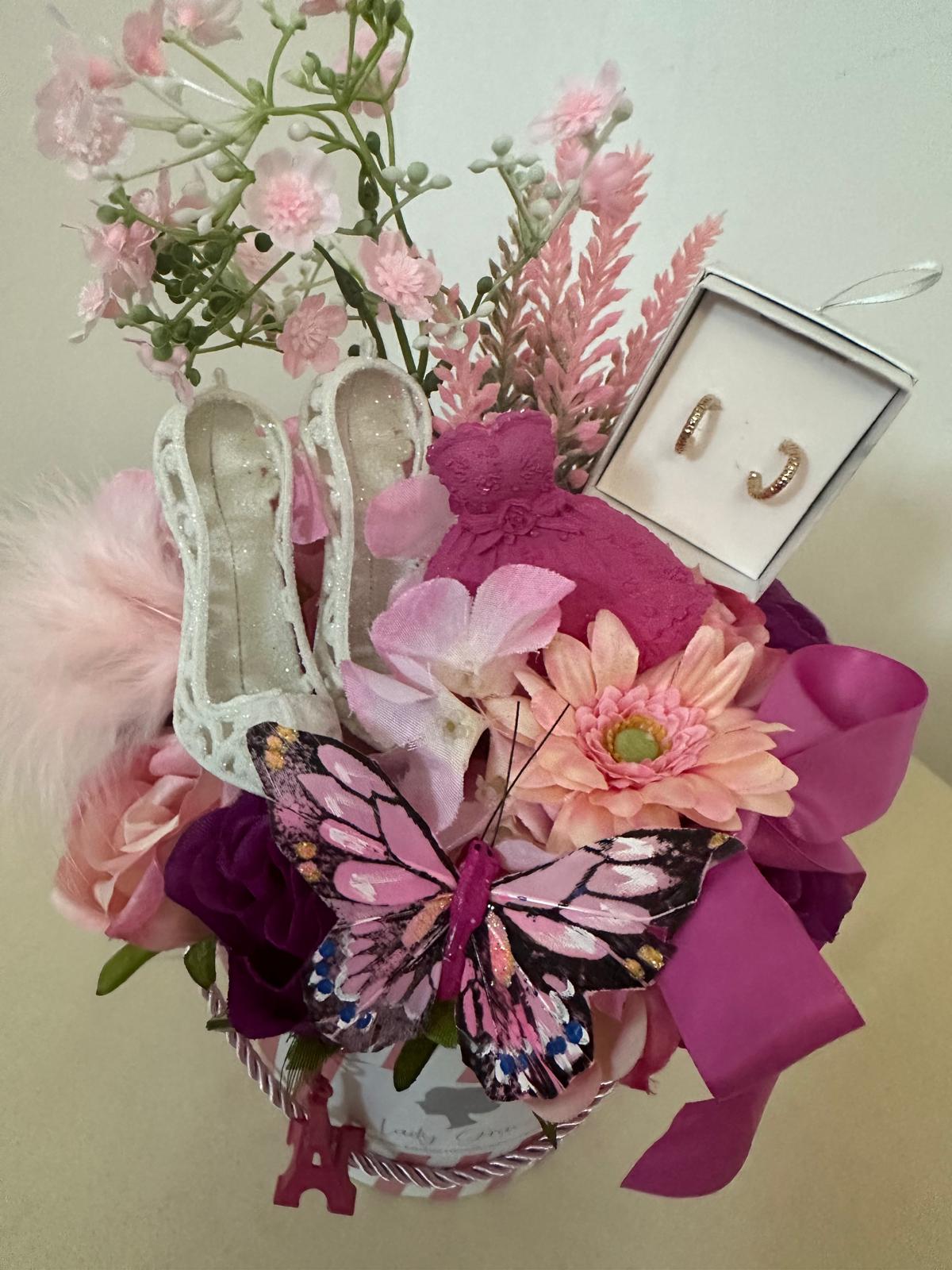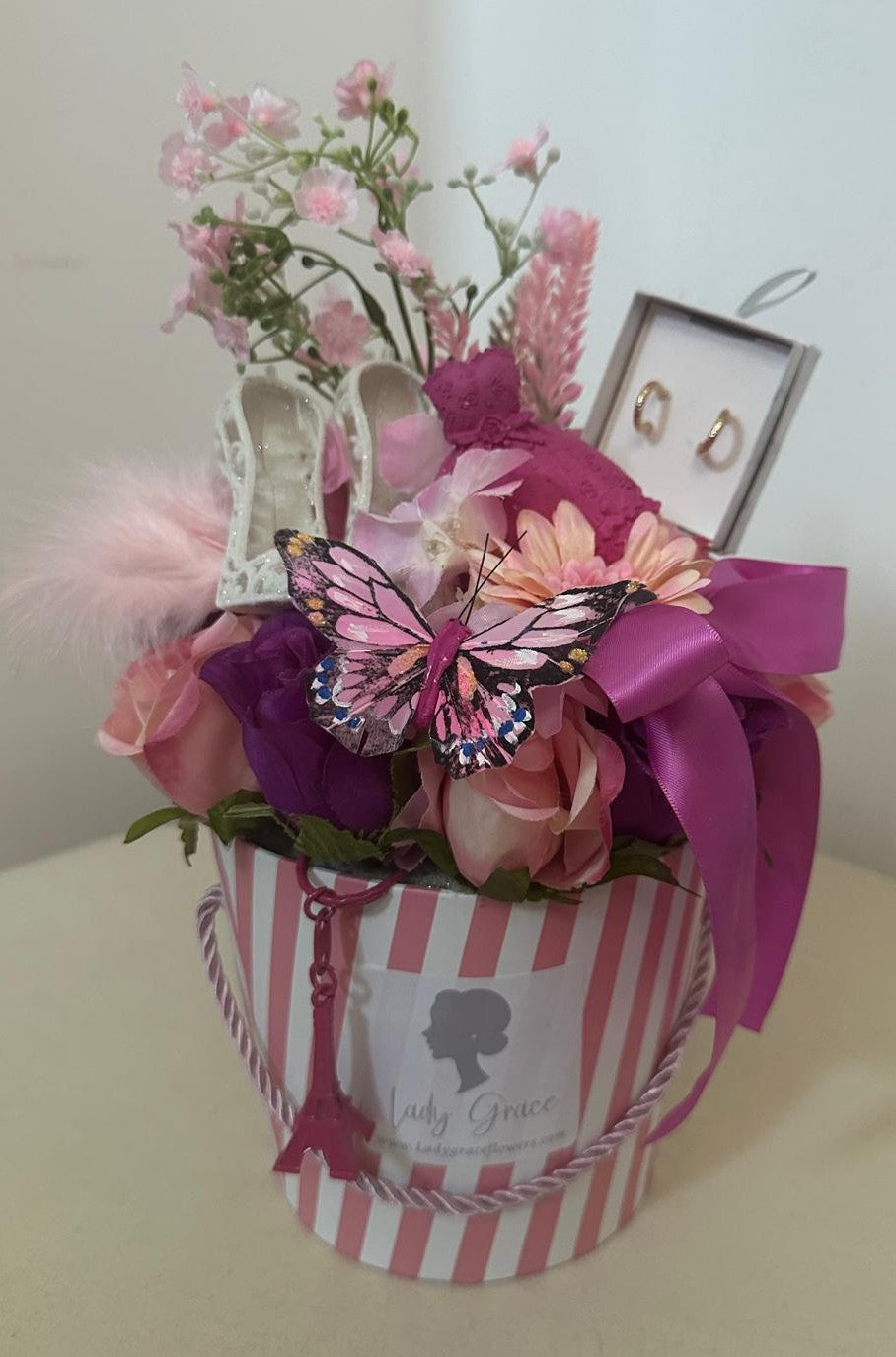 Emily in Paris inspired Hat Box & Earrings Silk Flowers Gift Hamper