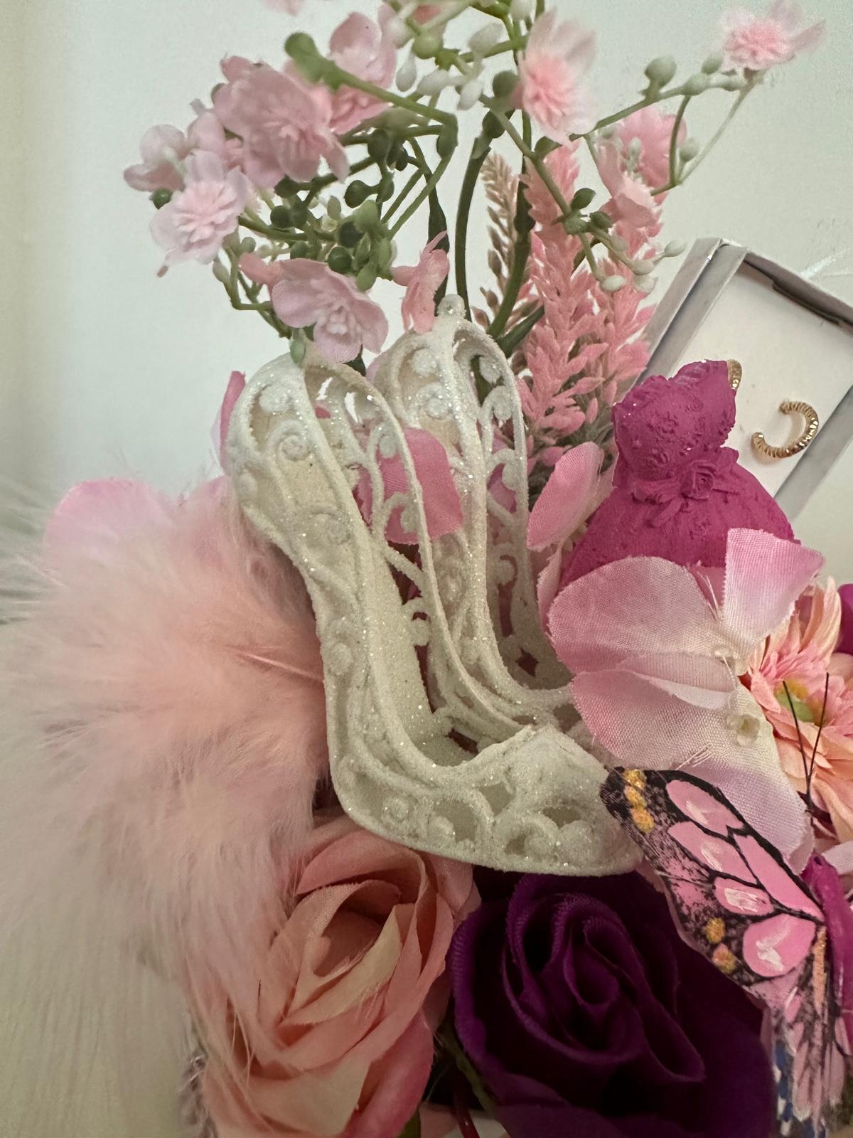 The whole arrangement is gorgeously adorned with an array of luxury silk flowers, making it look absolutely stunning.